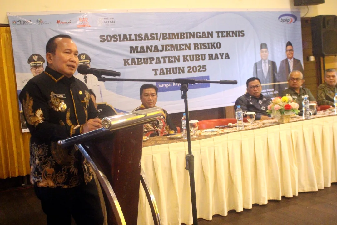 KUBU RAYA – Bupati Kubu Raya Sujiwo mengingatkan seluruh kepala perangkat daerah di lingkungan Pemerintah Kabupaten Kubu Raya untuk melakukan pengelolaan keuangan dengan baik. Hal itu disampaikan Bupati Sujiwo usai membuka kegiatan Sosialisasi/Bimbingan Teknis Manajemen Risiko Kabupaten Kubu Raya yang digelar Inspektorat Kabupaten Kubu Raya bekerja sama dengan Badan Pengawasan Keuangan dan Pembangunan (BPKP) Perwakilan Provinsi Kalimantan Barat di Gardenia Resort Kubu Raya, Rabu (10/4/2025).