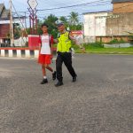 Wujud Kepedulian, Personel Sat Lantas Polres Seruyan Bantu Anak Sekolah Menyebrang Jalan